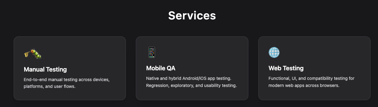 Our mission is to help teams ship products confidently by integrating QA from the discovery phase through to release readiness. We combine strong manual testing and exploratory thinking with practical automation and clear documentation, ensuring quality becomes integral to the development process. By collaborating closely with developers and stakeholders, we enhance release confidence and continuously improve product quality using tools like Playwright and Appium where they add value.